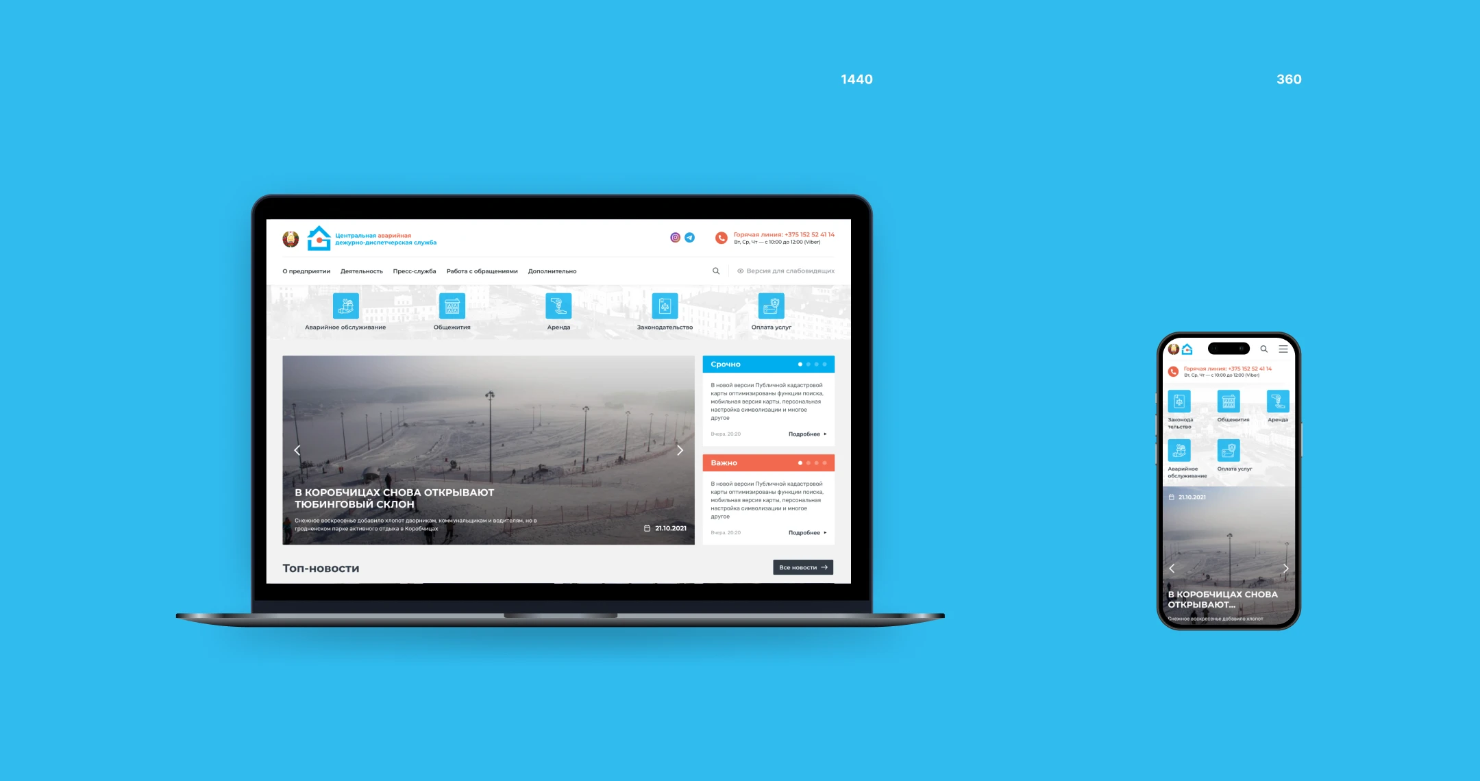 Создать интернет-портал для гродненской центральной аварийной службы. Заказчику было необходимо размещать на нем актуальные новости, информацию об арендных помещениях. Следовало оснастить сайт системой интернет-эквайринга для возможности оплаты за услуги службы. Ресурс должен отвечать всем современным стандартам безопасности и быть понятным для аудитории.