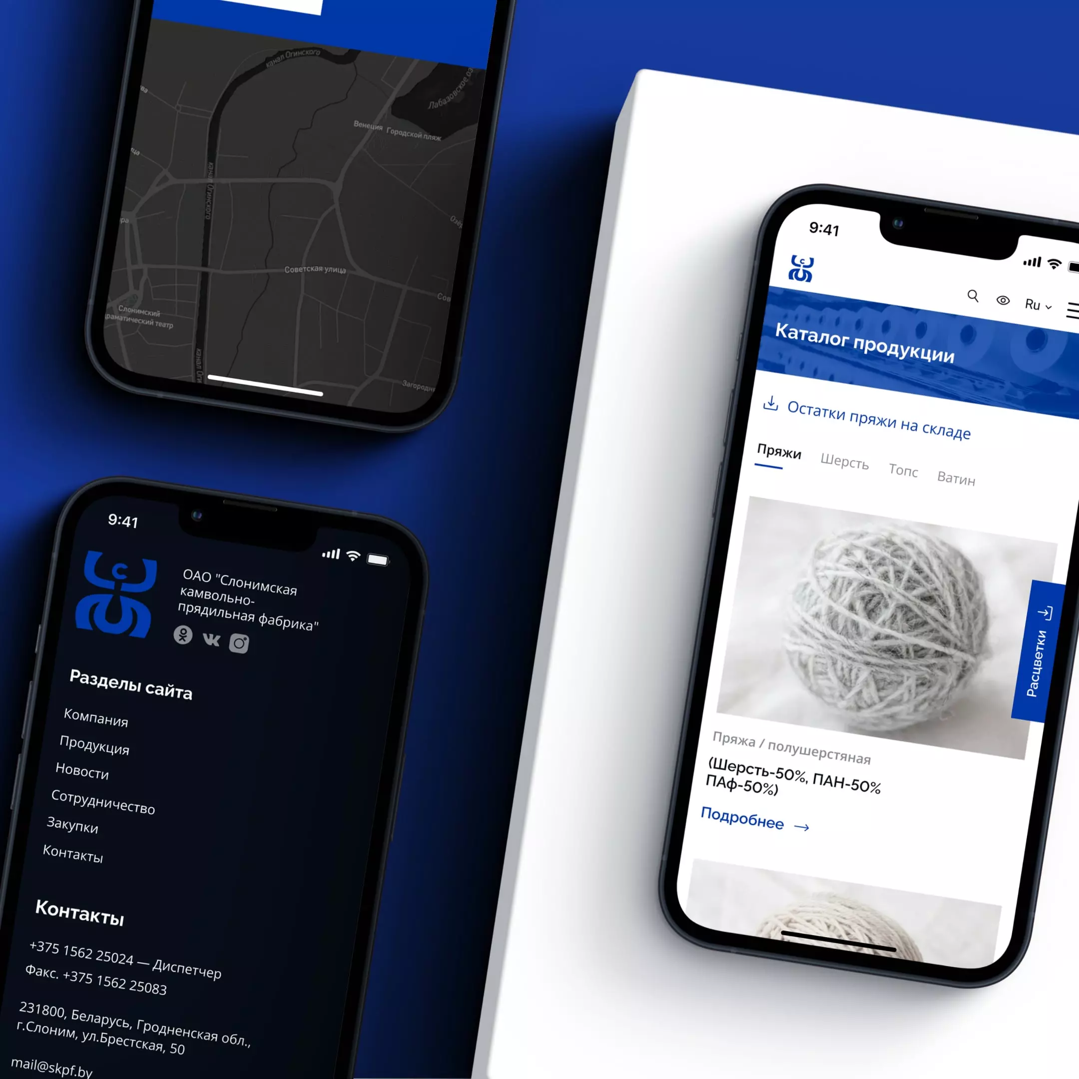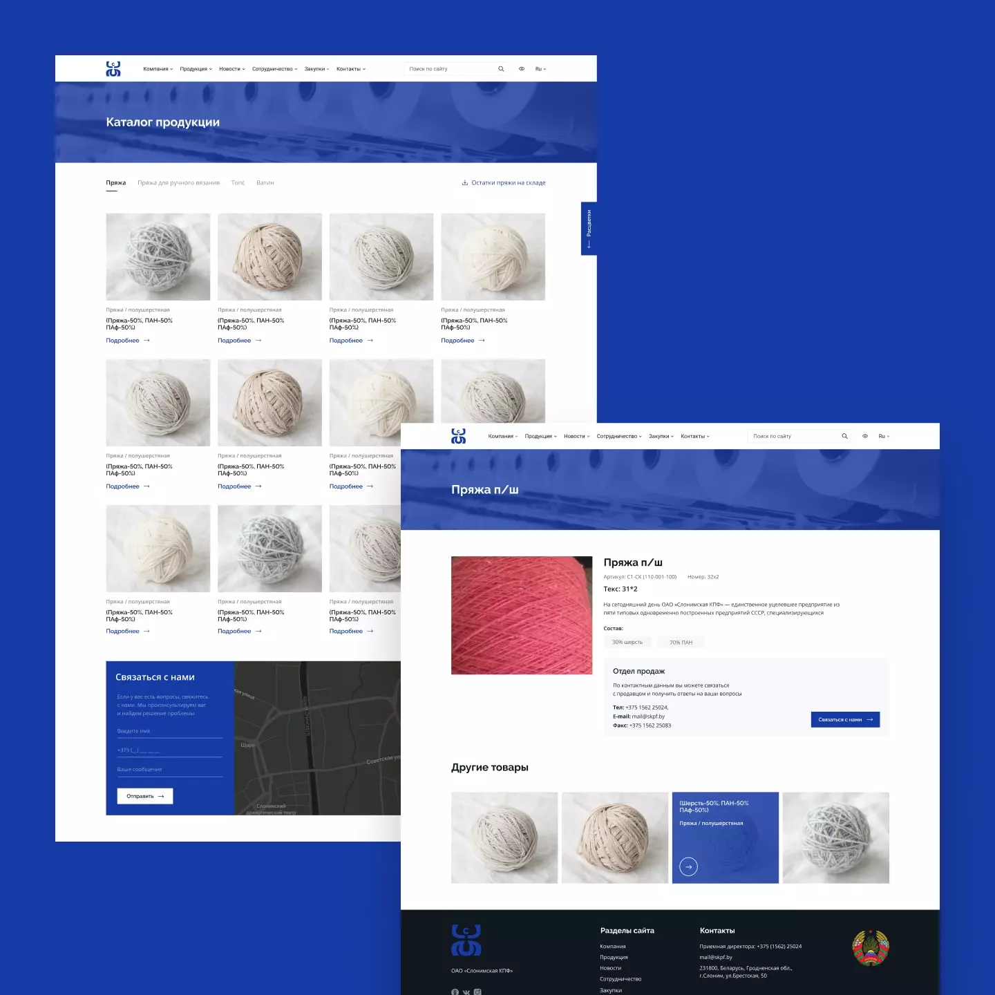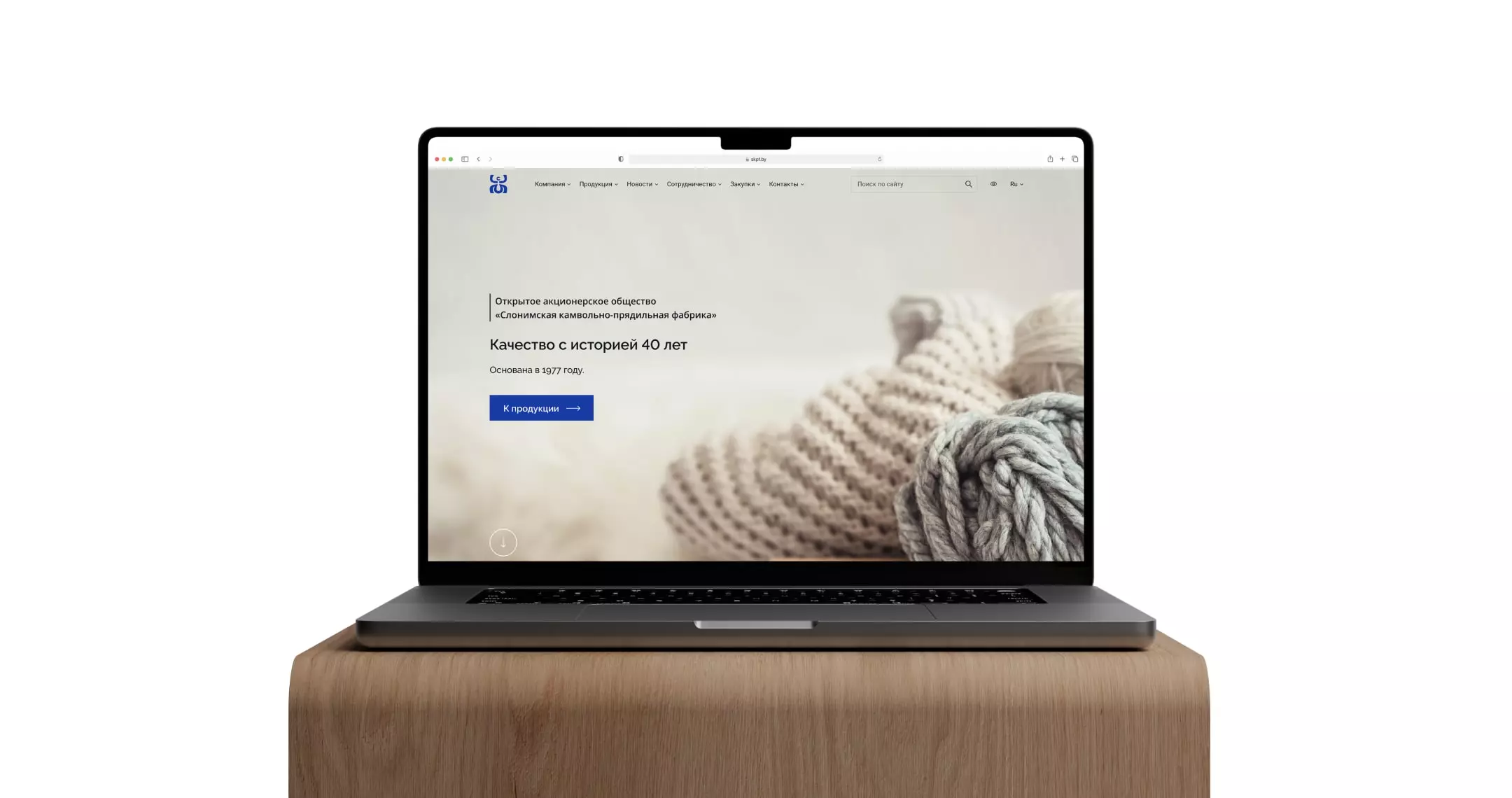 Слонимская камвольно-прядильная фабрика специализируется на выпуске камвольной пряжи. Стояла задача разработать новый сайт на принципах юзабилити и трендах графического дизайна.